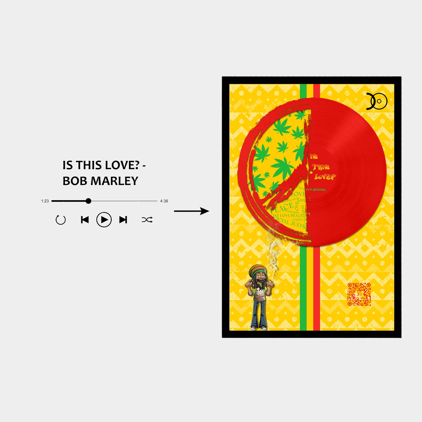 Each frame includes a discreet QR code linking directly to the full album on streaming platforms — merging physical art with digital sound.