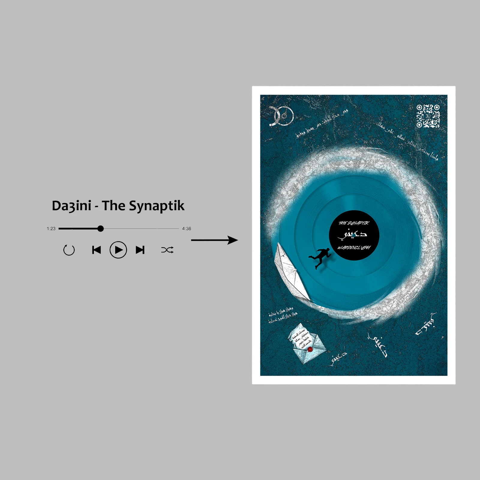 Each frame includes a discreet QR code linking directly to the full album on streaming platforms — merging physical art with digital sound.
